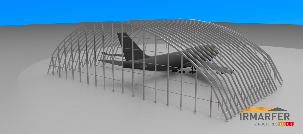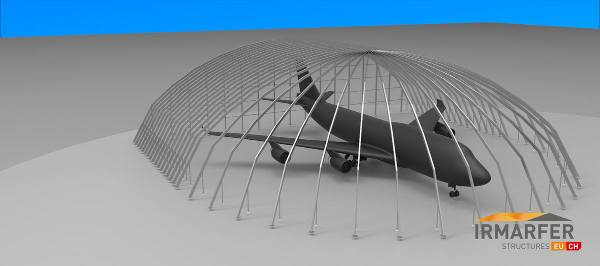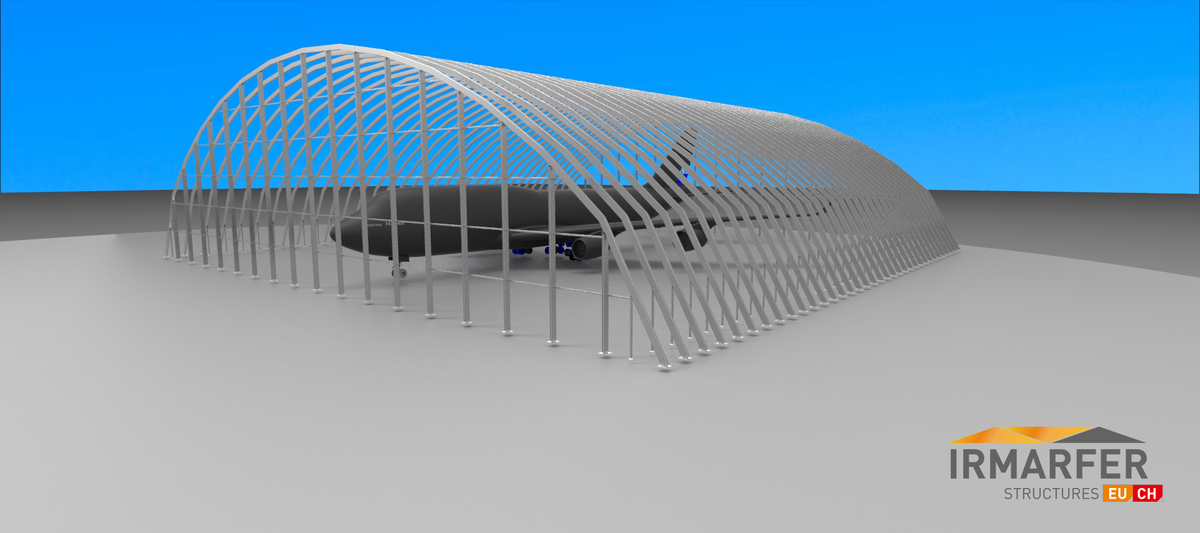 Auf Basis der IRMARFER Strukturen kann man nahezu jede Größe an Passagier, CARGO, Militärflugzeugen sowie Privatjets & Sportflugzeuge überdachen.